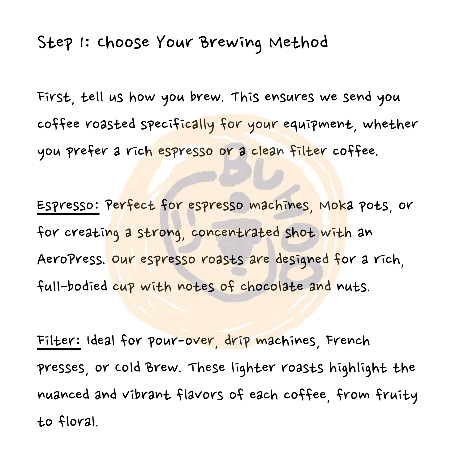 First, tell us how you brew. This ensures we send you coffee roasted specifically for your equipment, whether you prefer a rich espresso or a clean filter coffee.