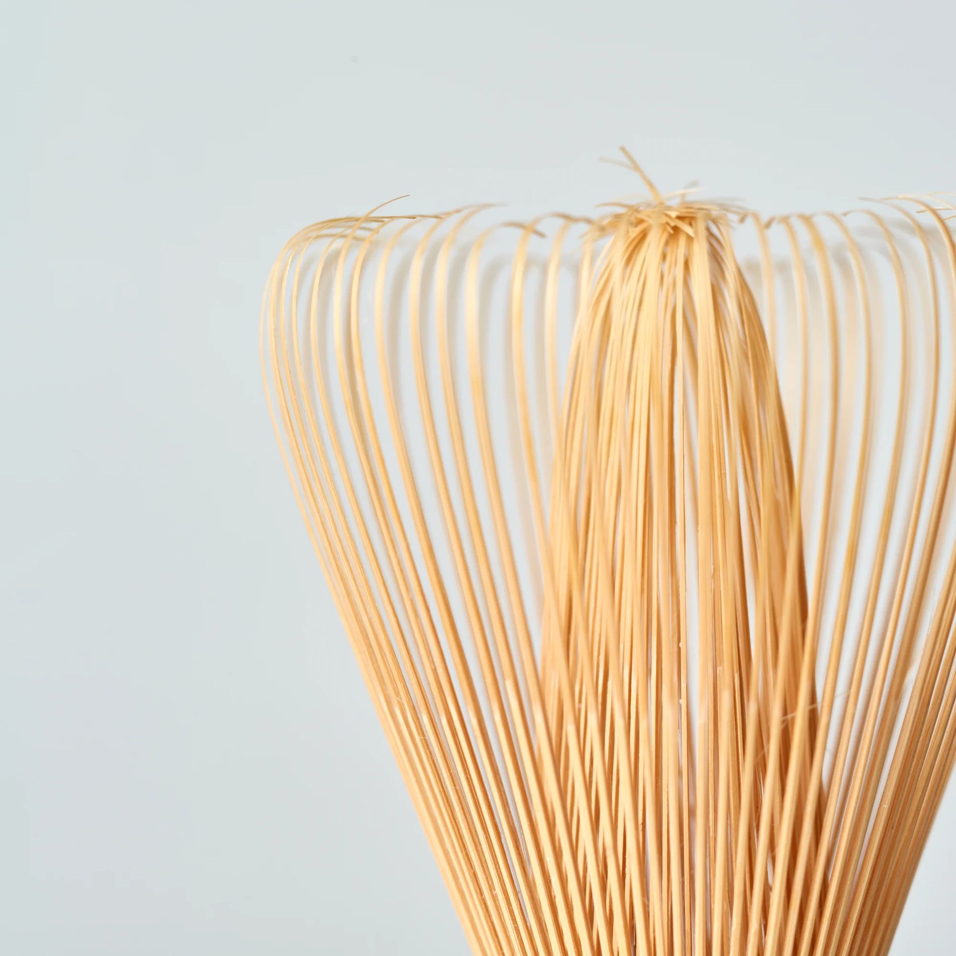 Each whisk is made from one piece of bamboo, with a fascinating method of splitting the bamboo along its grain/fiber- the durable and flexible, brush-like tip aerates the liquid as you whisk, creating a fine, silky smooth matcha.