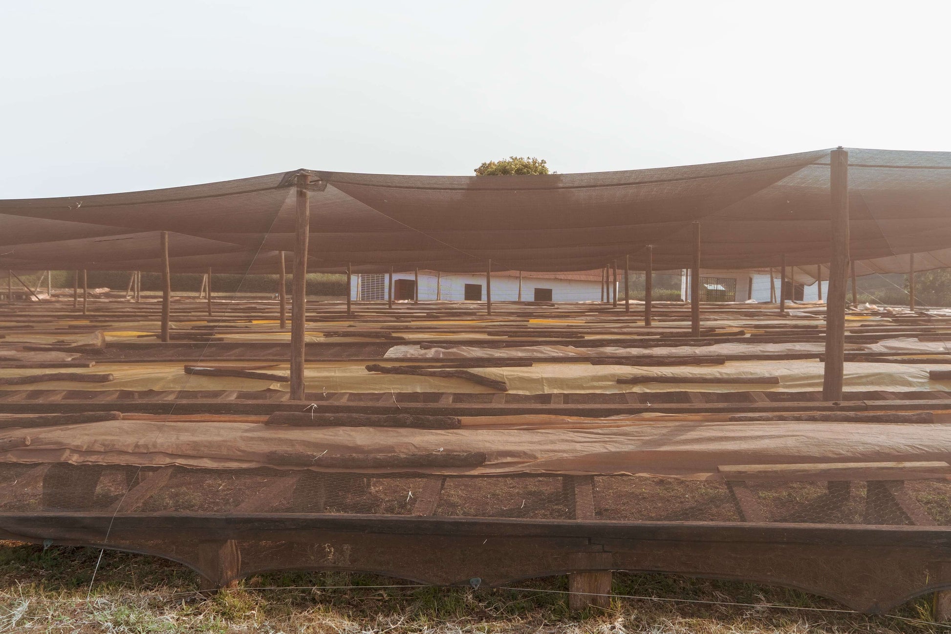 Drying is carried out on raised African beds for 13 to 16 days, depending on climatic conditions, until a moisture content of 12% is reached. The dried parchment is stored in a dry area prior to shipment.